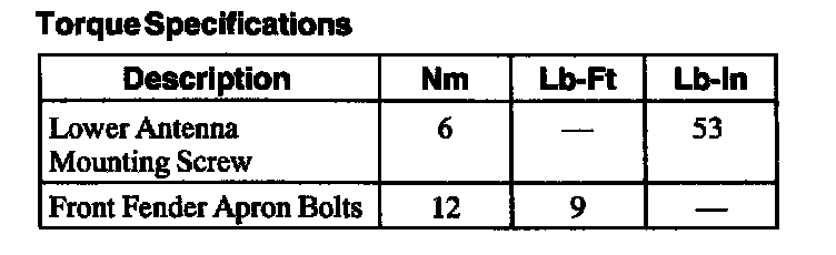 Torque Specifications: