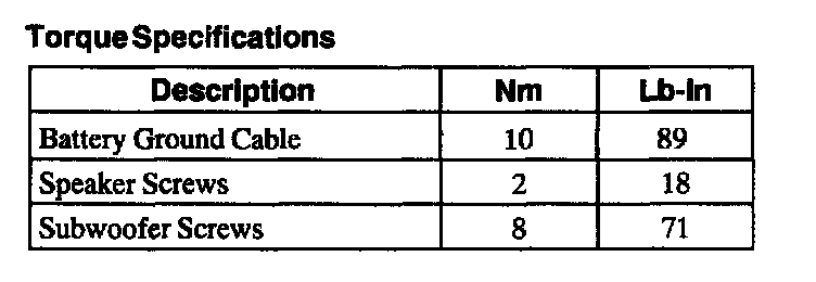 Torque Specifications: