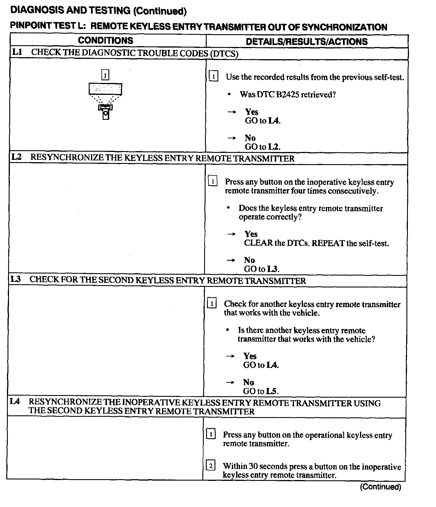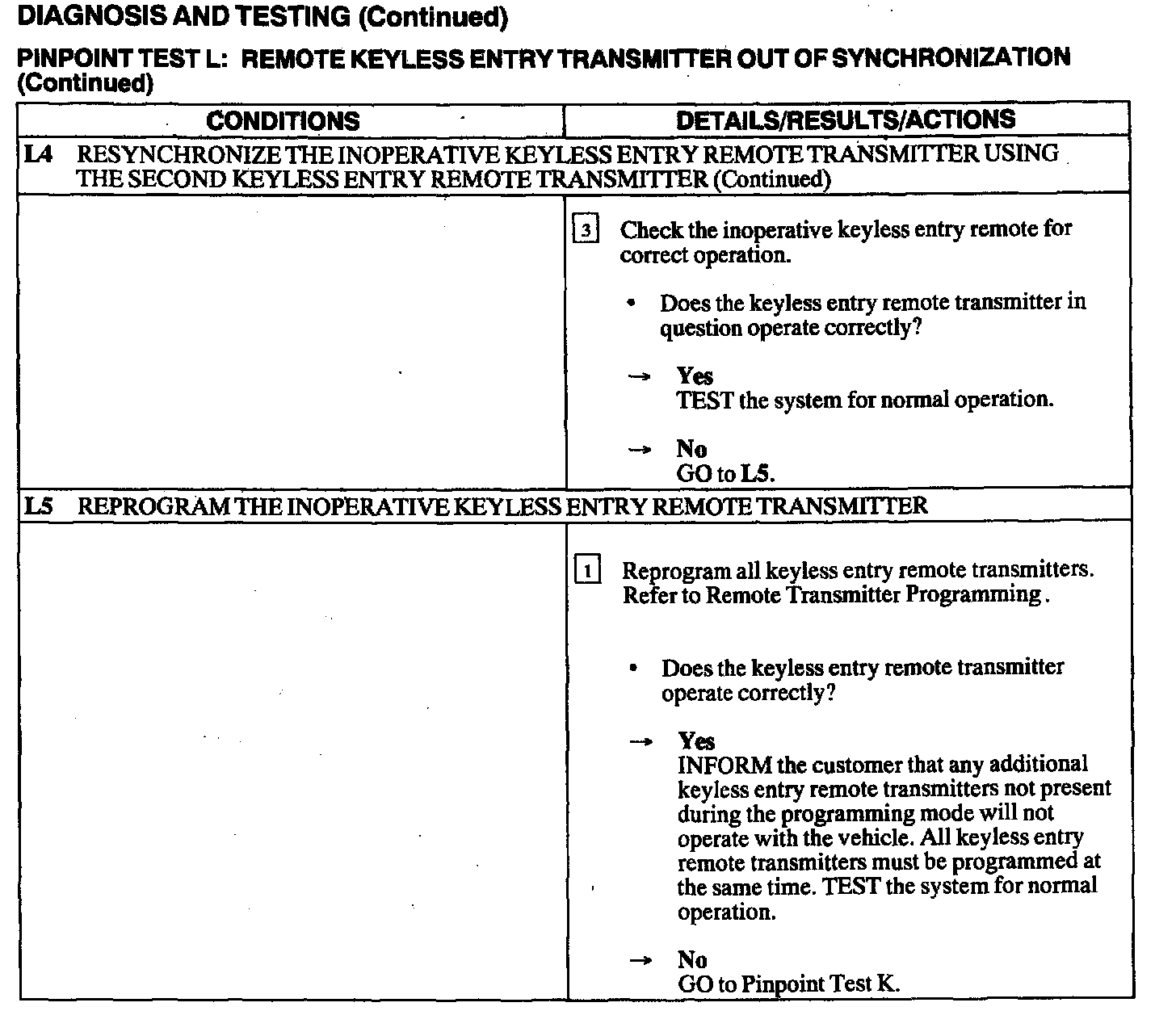 Test L: Remote Keyless Entry Transmitter Out Of Synchronization
