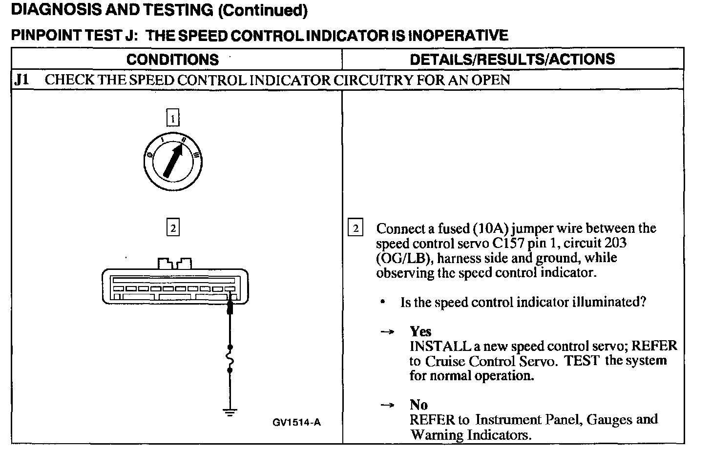 Test J: Speed Control Indicator Is Inoperative