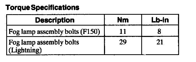 Torque Specifications: