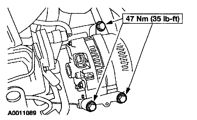2 Remove the generator B+ cable nut.