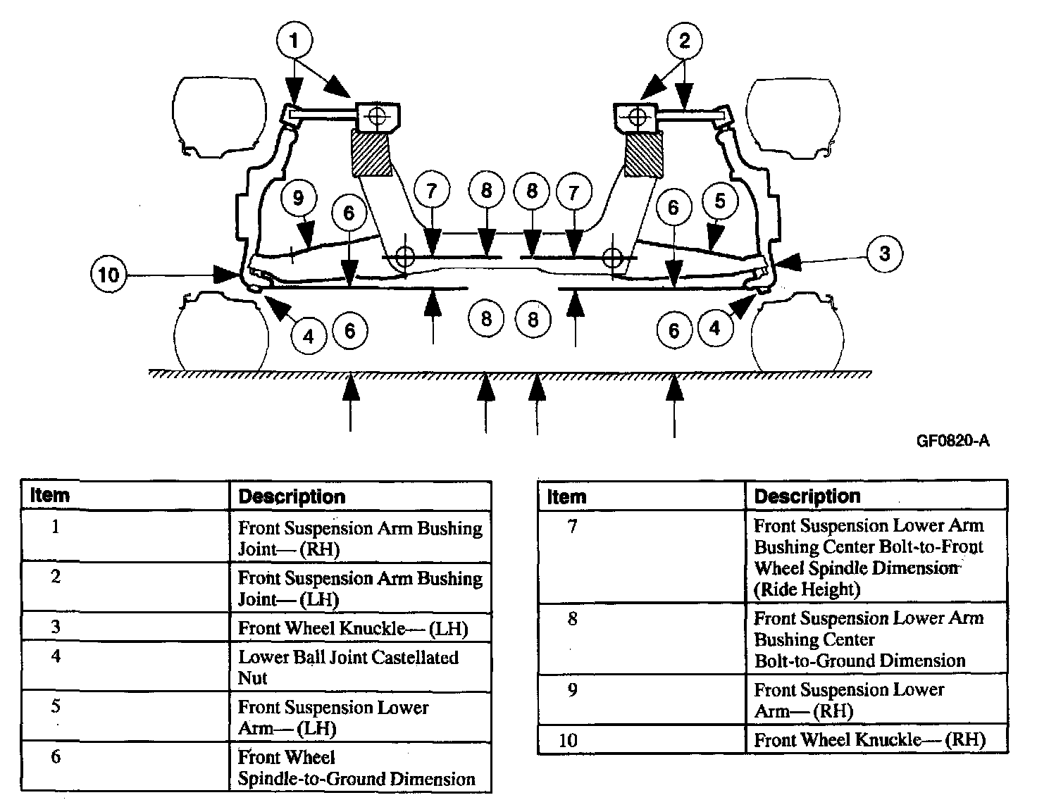 4. Measure the front suspension from the bottom of the front wheel knuckle to the runway lift, and record the measurement.
