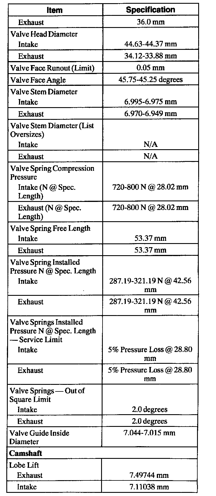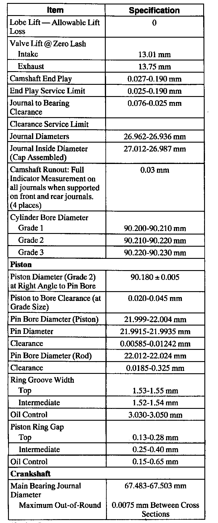 Engine Specifications