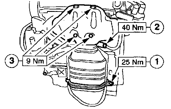 1. Tighten the bolts on the catalytic converter bracket.