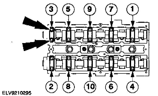 16. NOTE: Working in several stages, evenly loosen each bolt two turns at a time in the indicated sequence and remove the bolts.