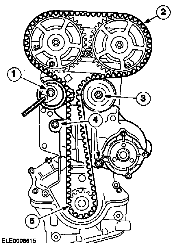 NOTE: Ford does not provide camshaft gear timing marks, or information to perform timing belt service without the special tools shown in this procedure.