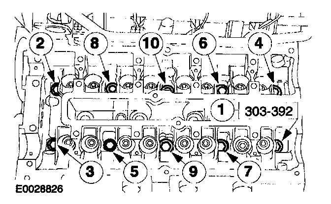 NOTE: Immobilize the flywheel using Special Tool 303-103.