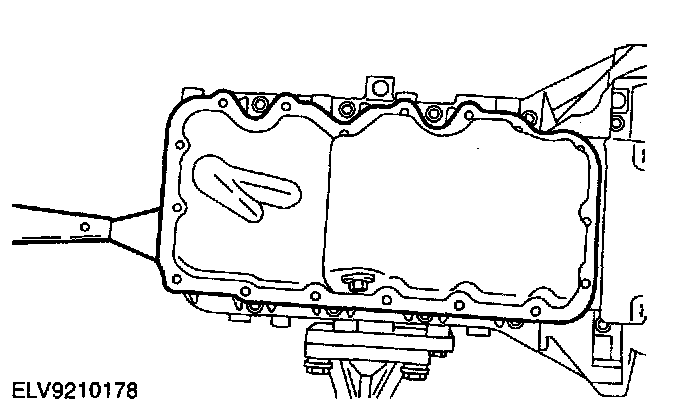 ^ Separate the oil pan from the lower crankcase using a sharp spatula. Release the oil pan from the lower crankcase by tapping slightly against the tightened drain plug with a rubber hammer.