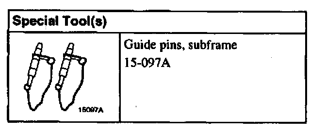 1. Position the subframe using the transmission jack and insert the guide pins.