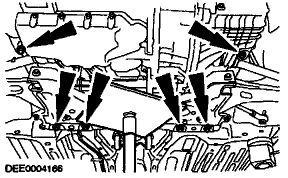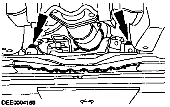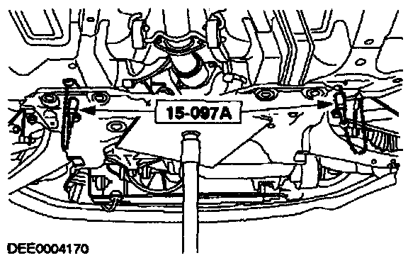 - Slightly lower the subframe with a transmission jack.