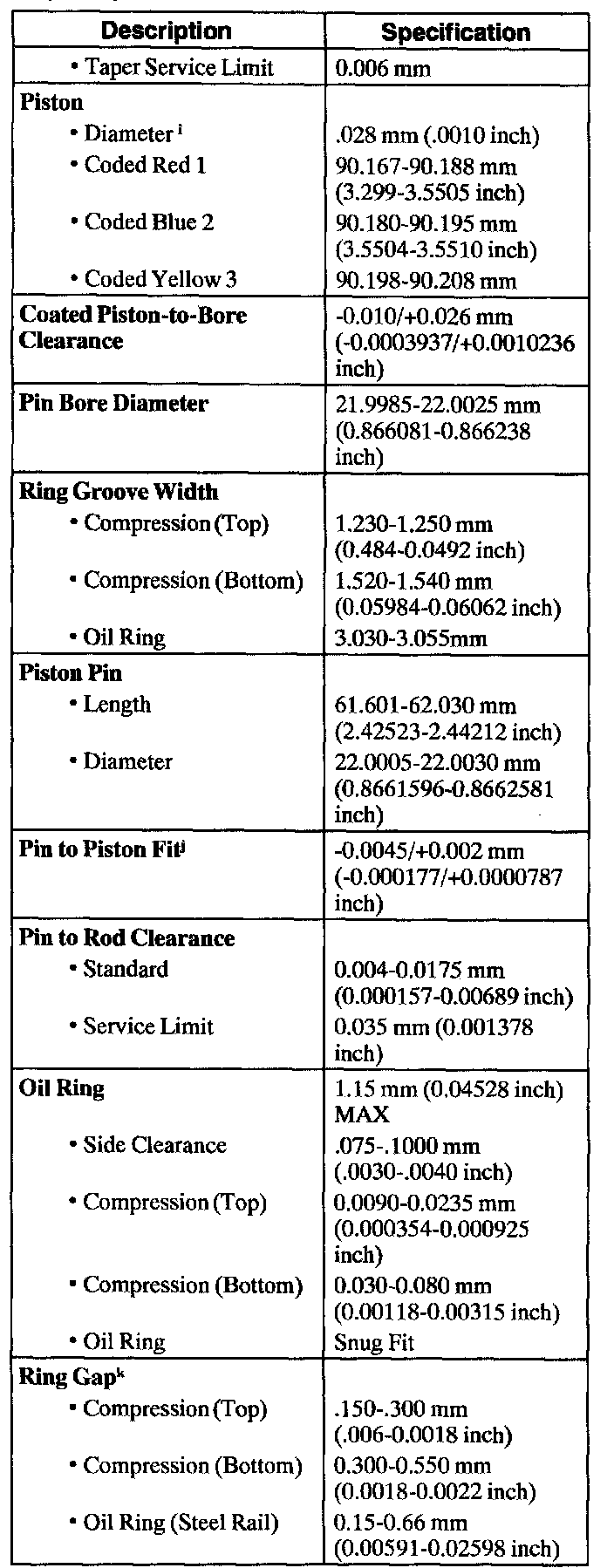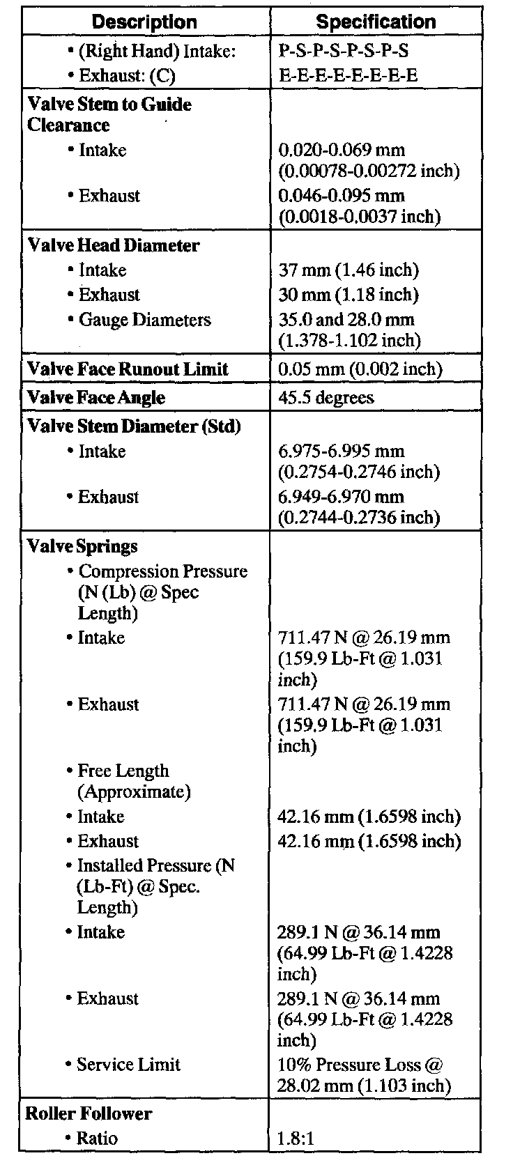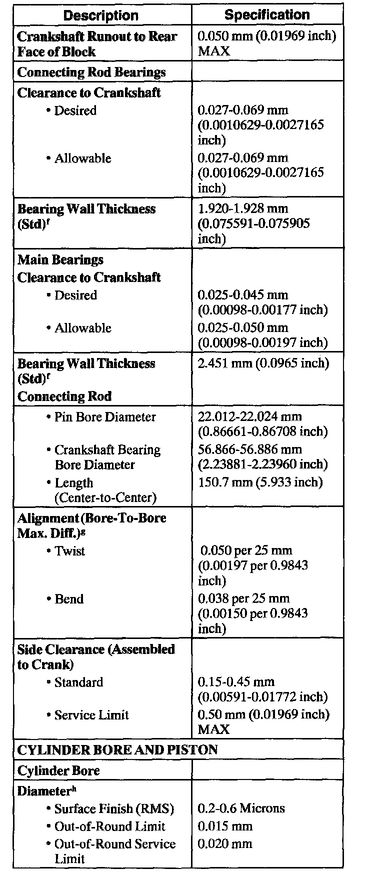 Engine Specifications