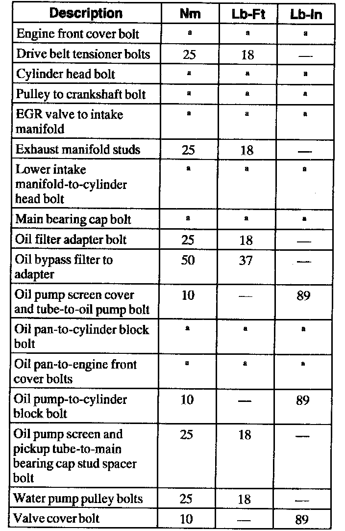 General Torque Specifications