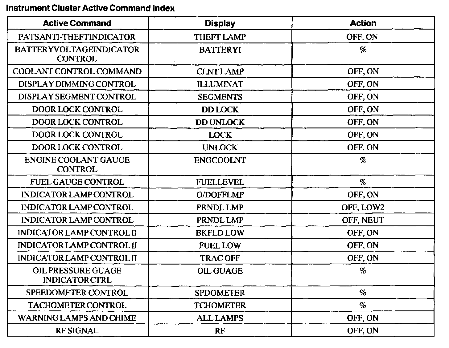 Instrument Cluster Active Command Index: