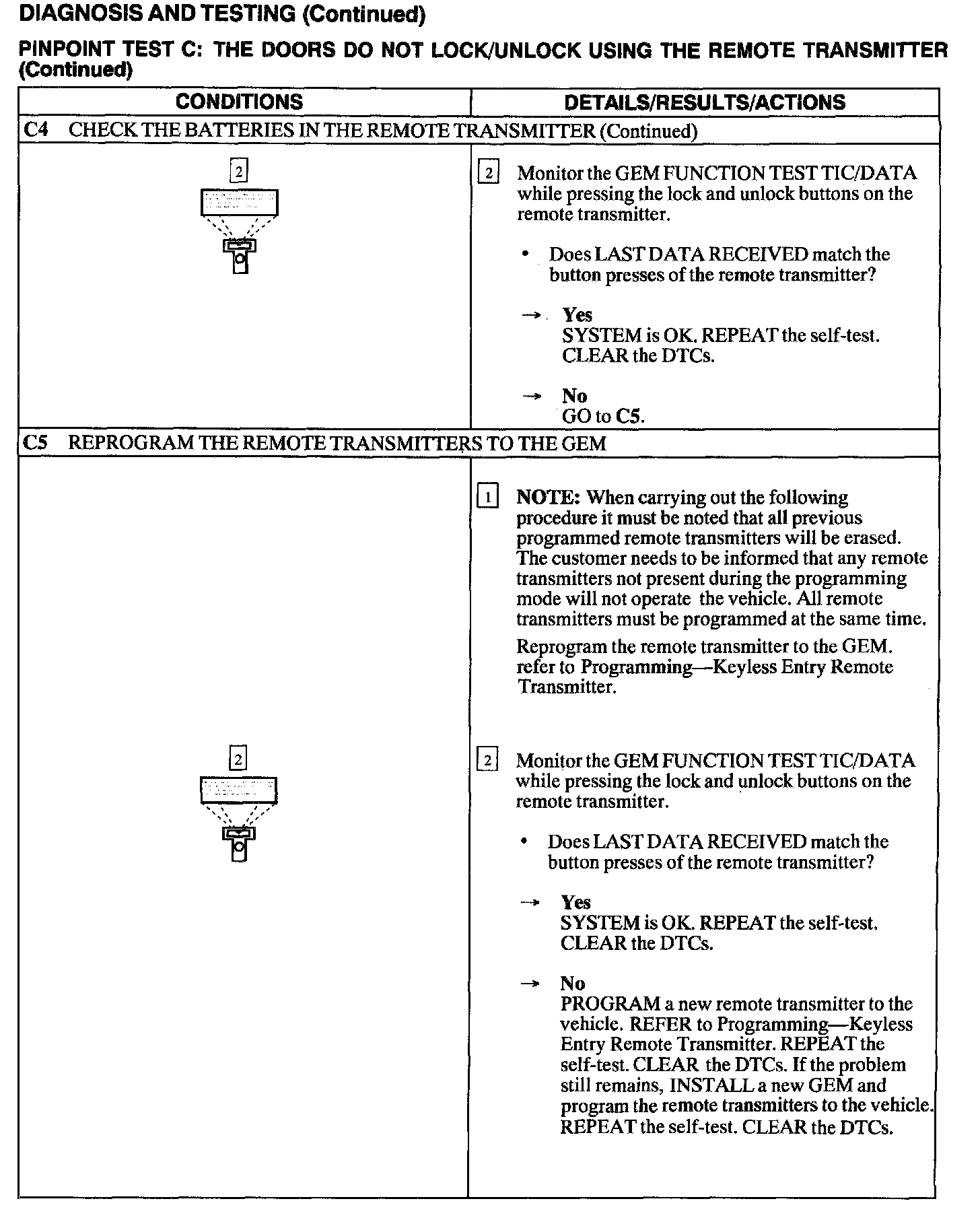 Test C: Doors Do Not Lock/Unlock Using the Remote Transmitter