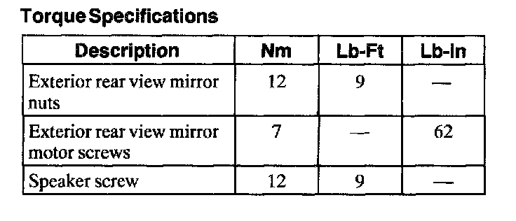 Torque Specifications:
