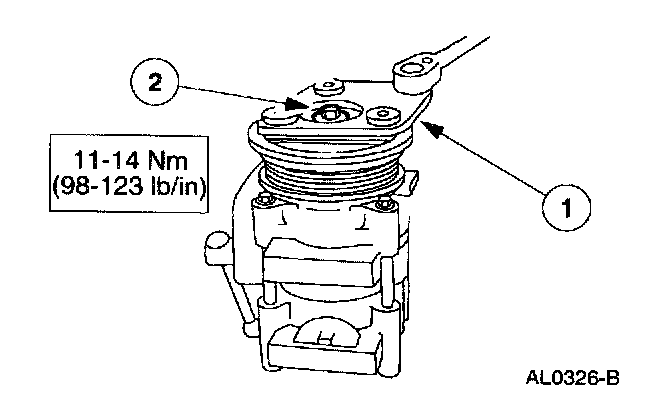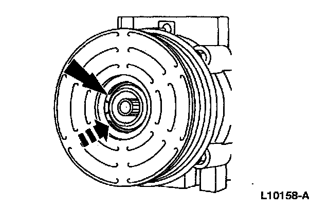 NOTE: The A/C clutch pulley is a tight fit on the A/C compressor head. It must be correctly aligned during installation.