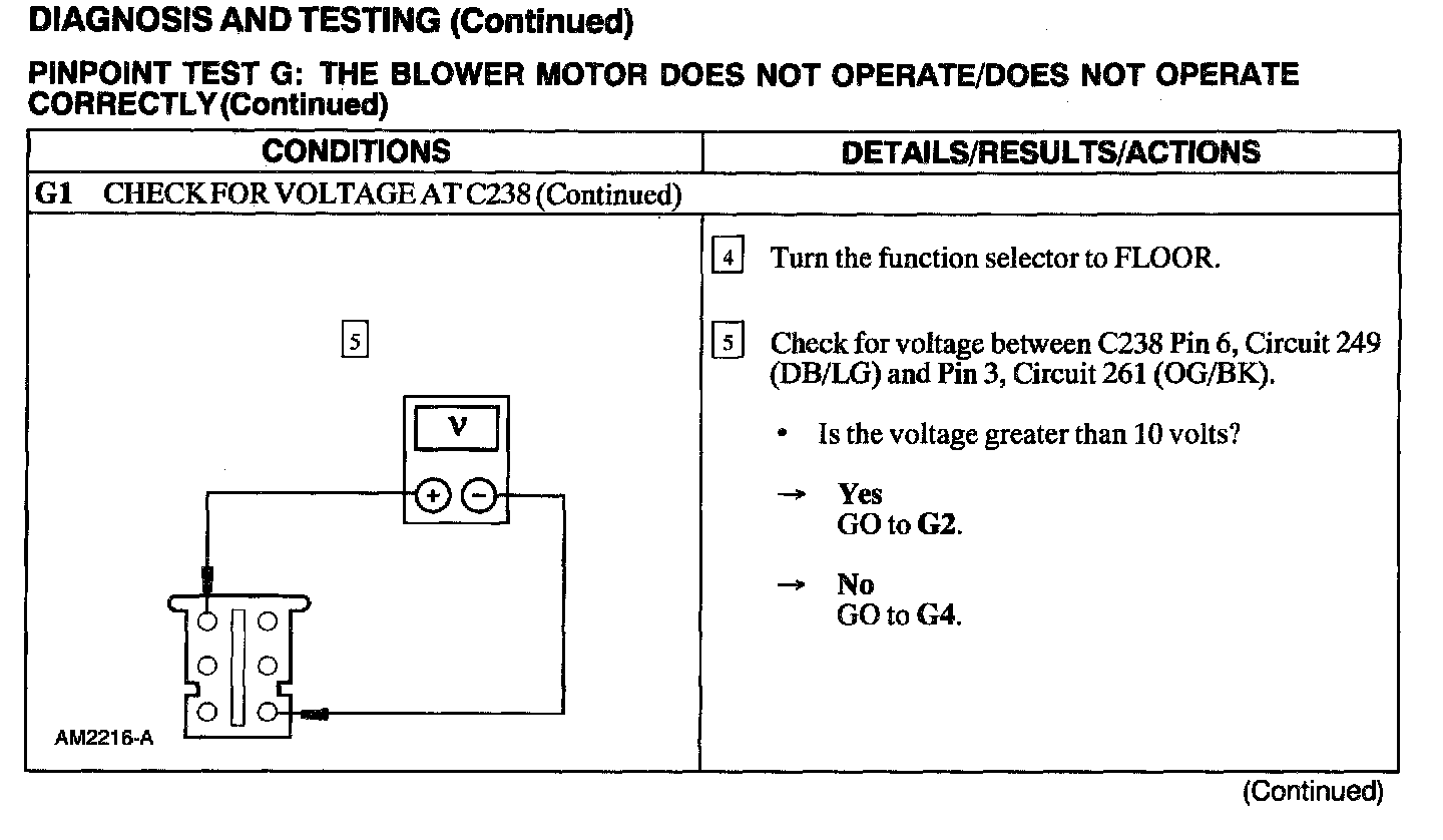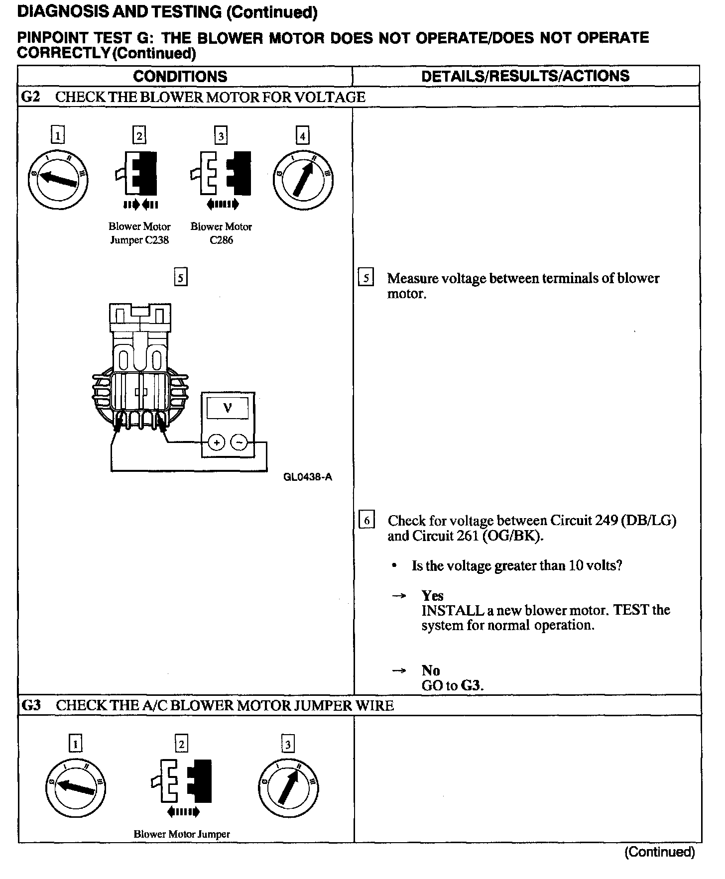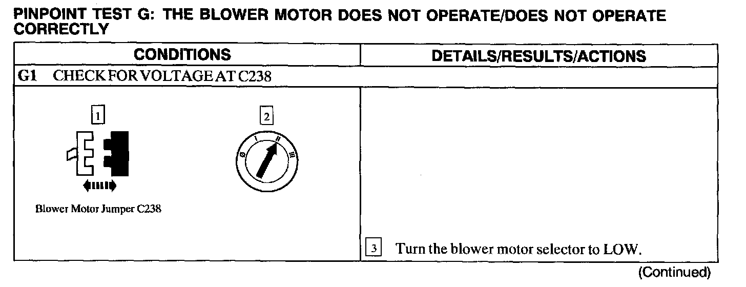 Test G: Blower Motor Does Not Operate/Or Operates Incorrectly