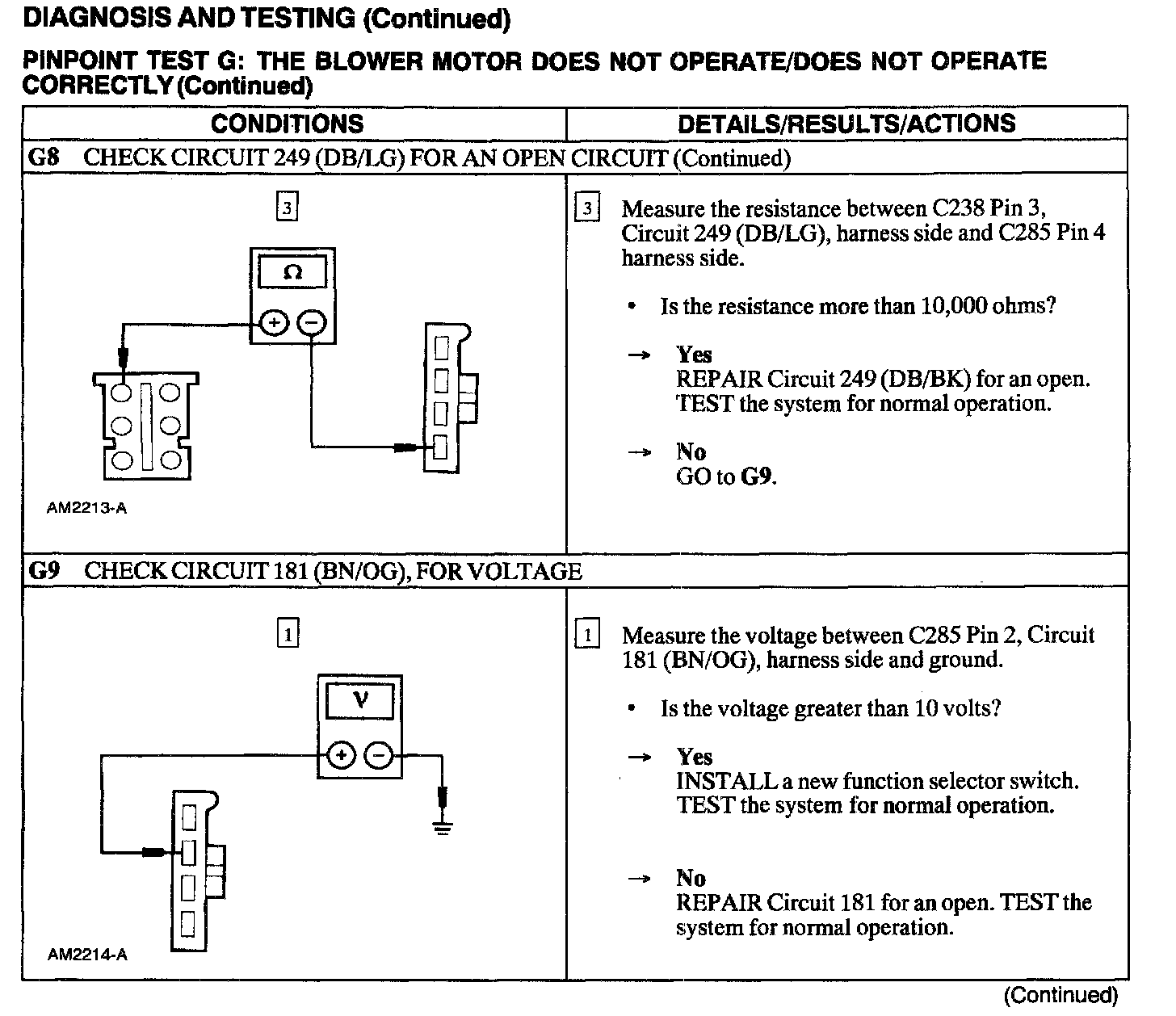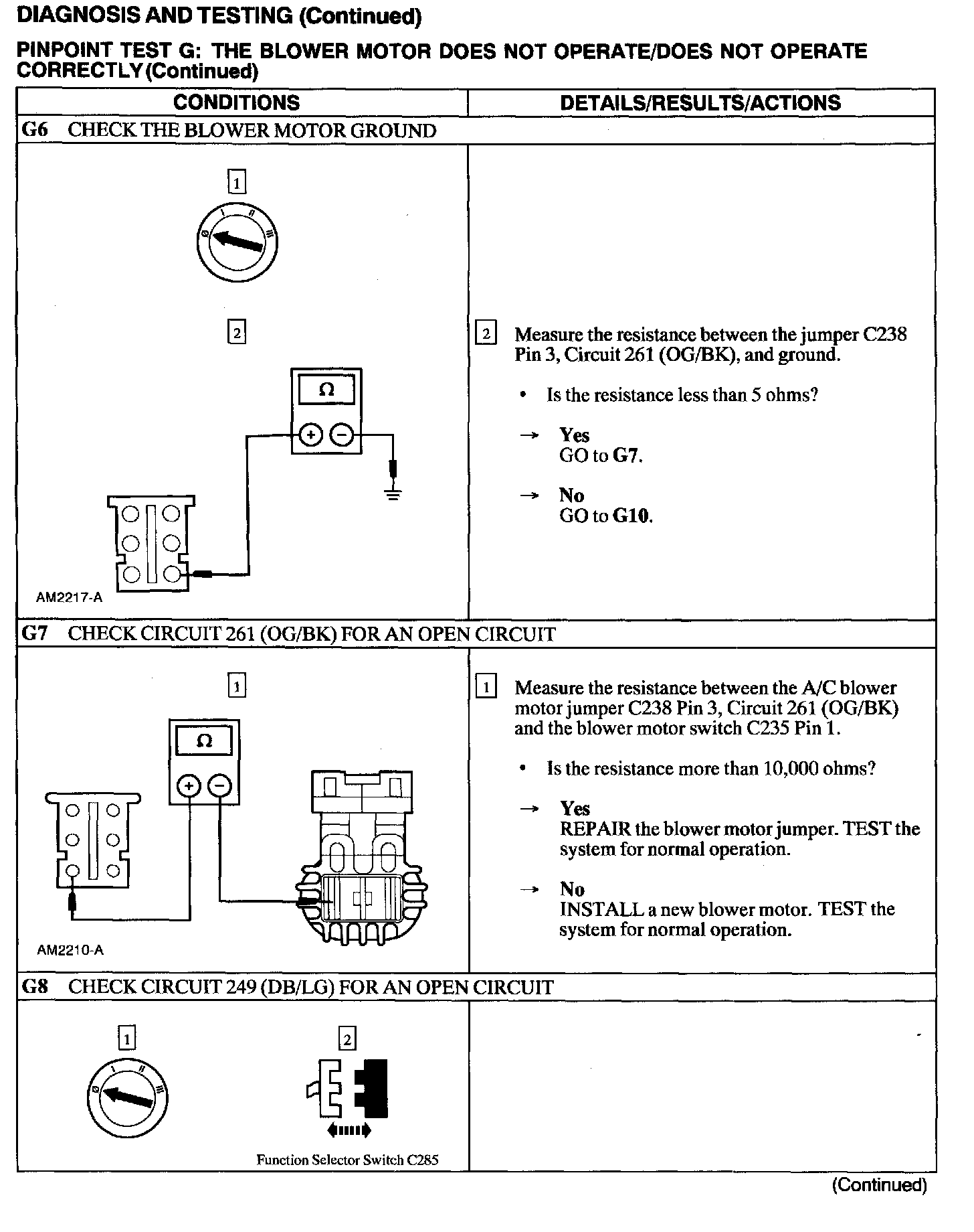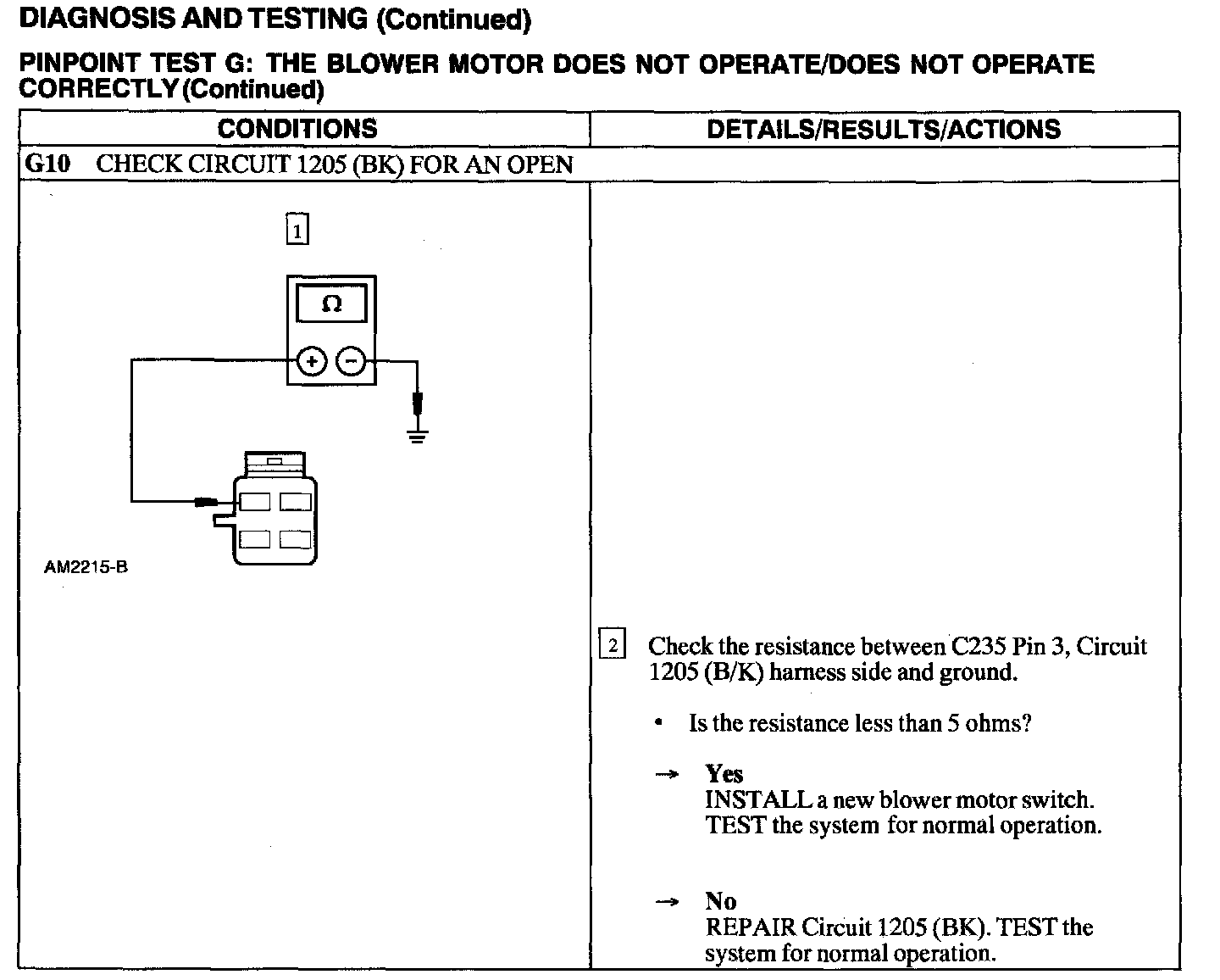Test G: Blower Motor Does Not Operate/Or Operates Incorrectly