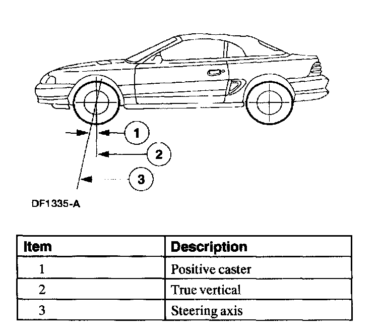Caster is the deviation from vertical of an imaginary line drawn through the ball joints when viewed from the side. Caster specifications will give the vehicle the best directional stability characteristics when loaded and driven. Caster setting is not related to tire wear.