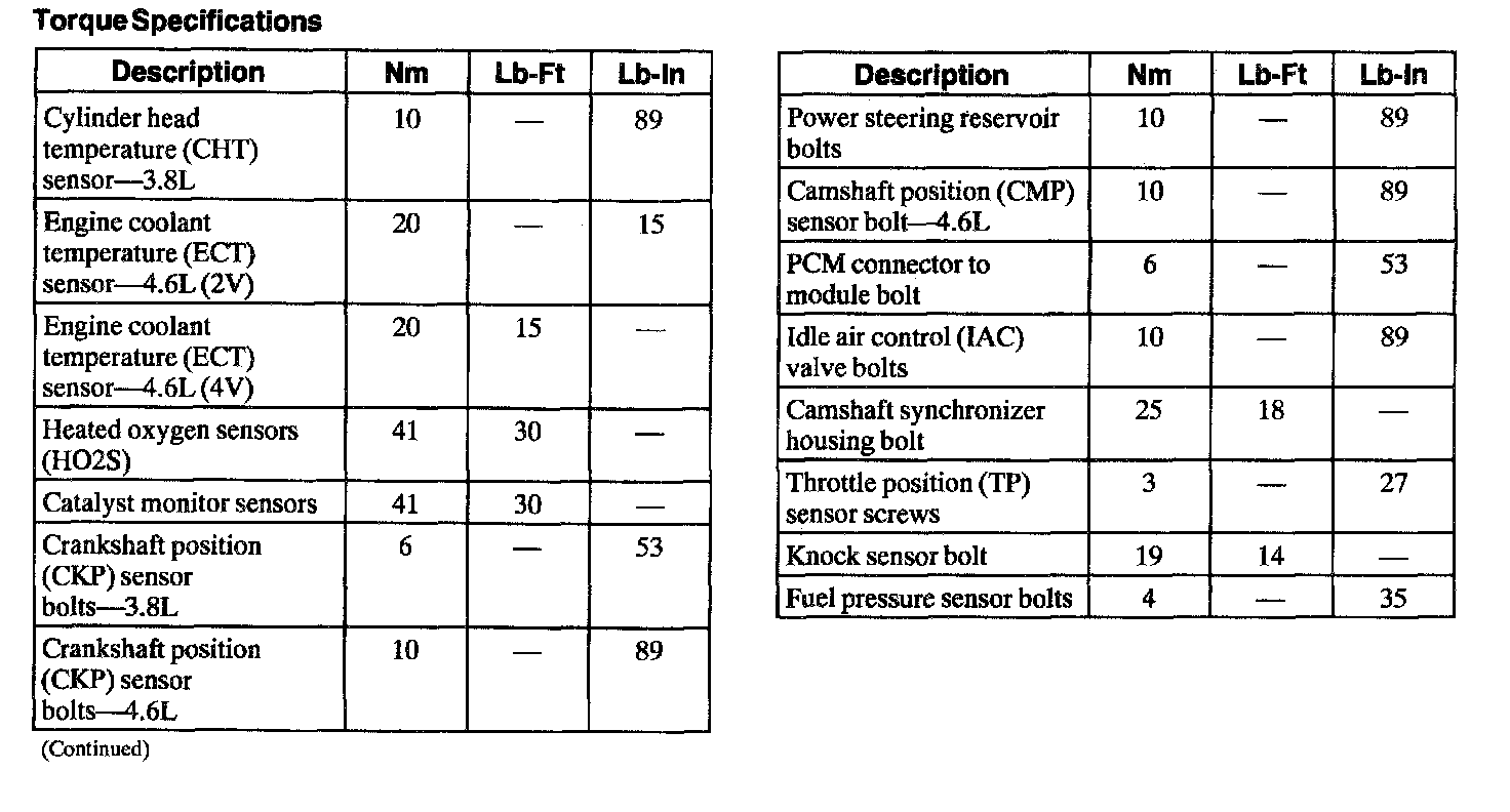 Torque Specifications: