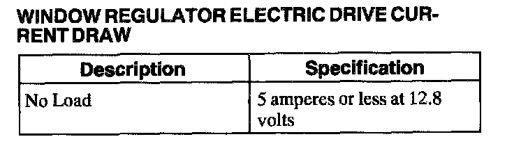 Window Regulator Electric Drive Current Draw: