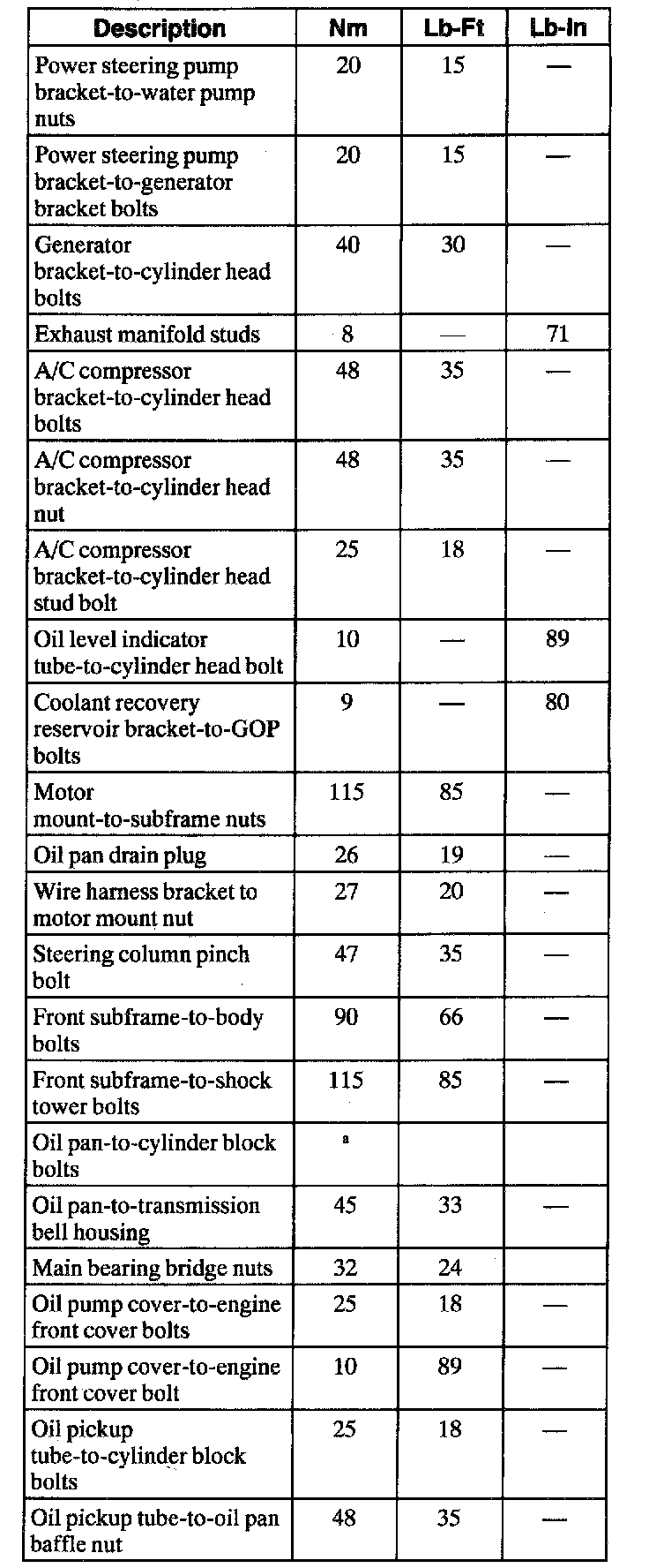 General Torque Specifications