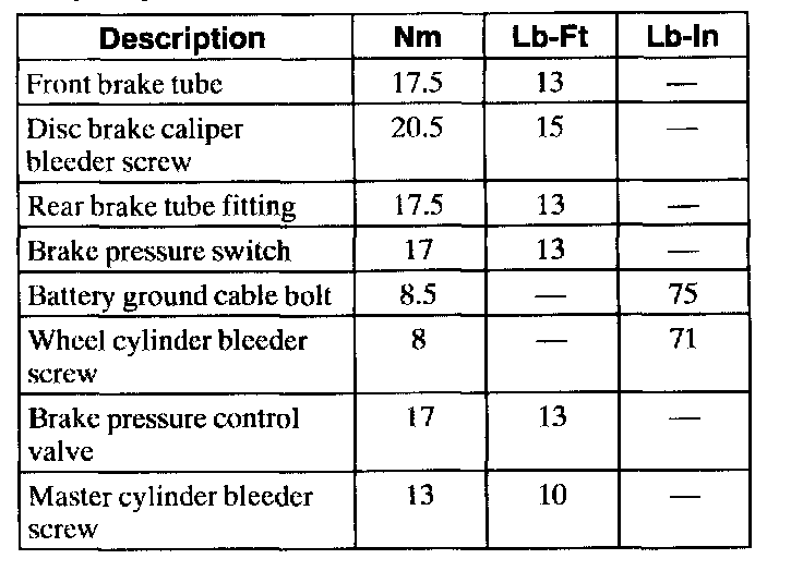 Torque Specifications