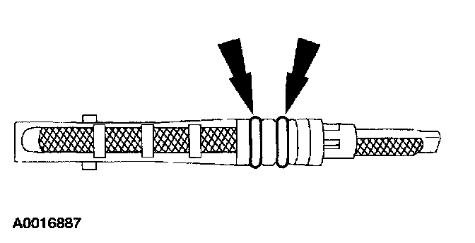 ^ Install new O-ring seals lubricated with clean PAG oil or equivalent.