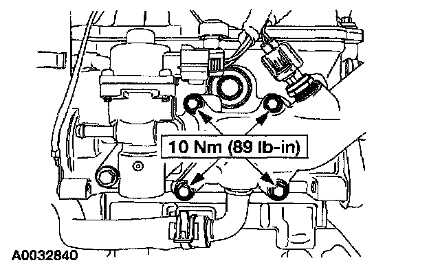 ^ Inspect the two front coolant outlet pipe O-rings. Install new O-rings if necessary.