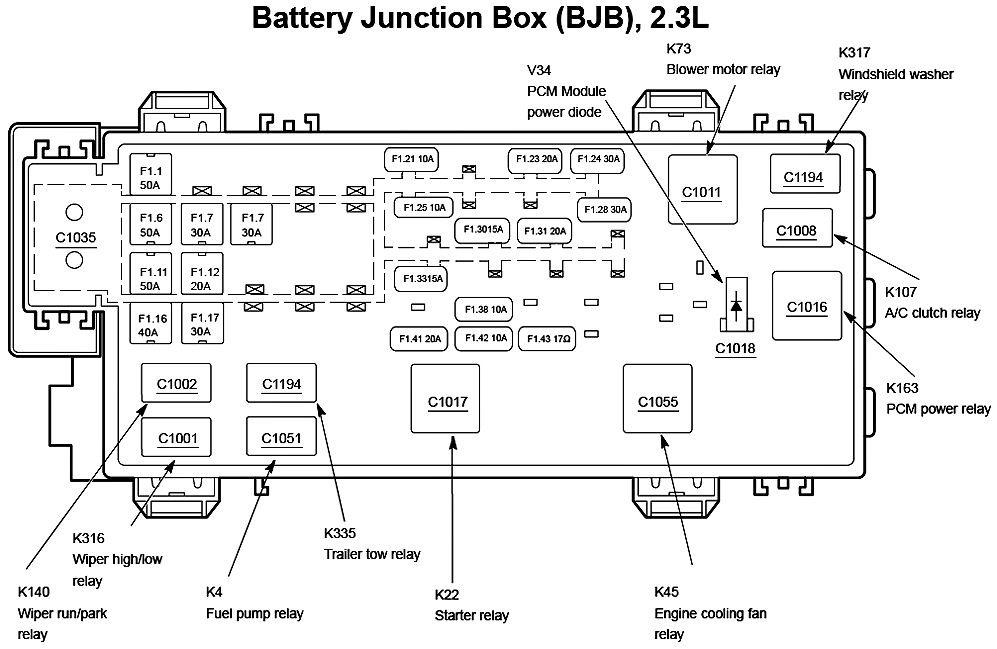 ALLDATA Editor's Note: Ford identifies this one component by 2 different names. Users have reported success comparing these images to determine Application/ID or Location of Fuses and Relays with in the Battery Junction Box/Power Distribution Box.Battery Junction Box/Power Distribution Box Location: