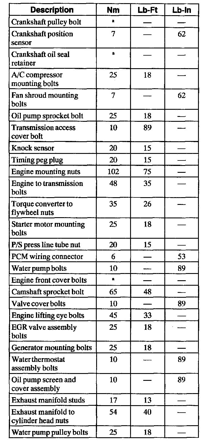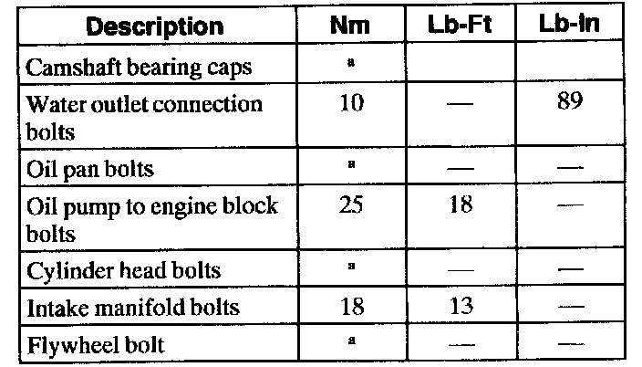 Torque Specifications