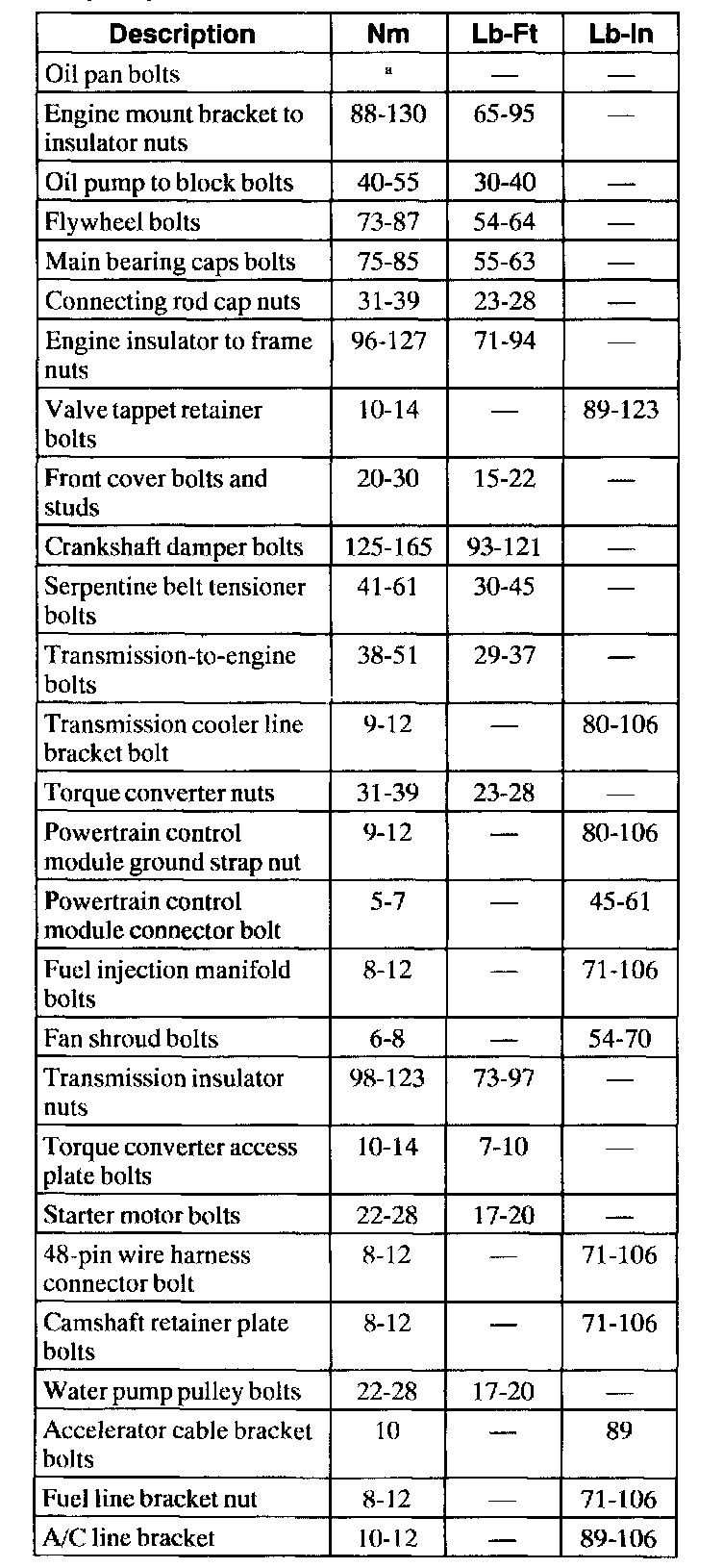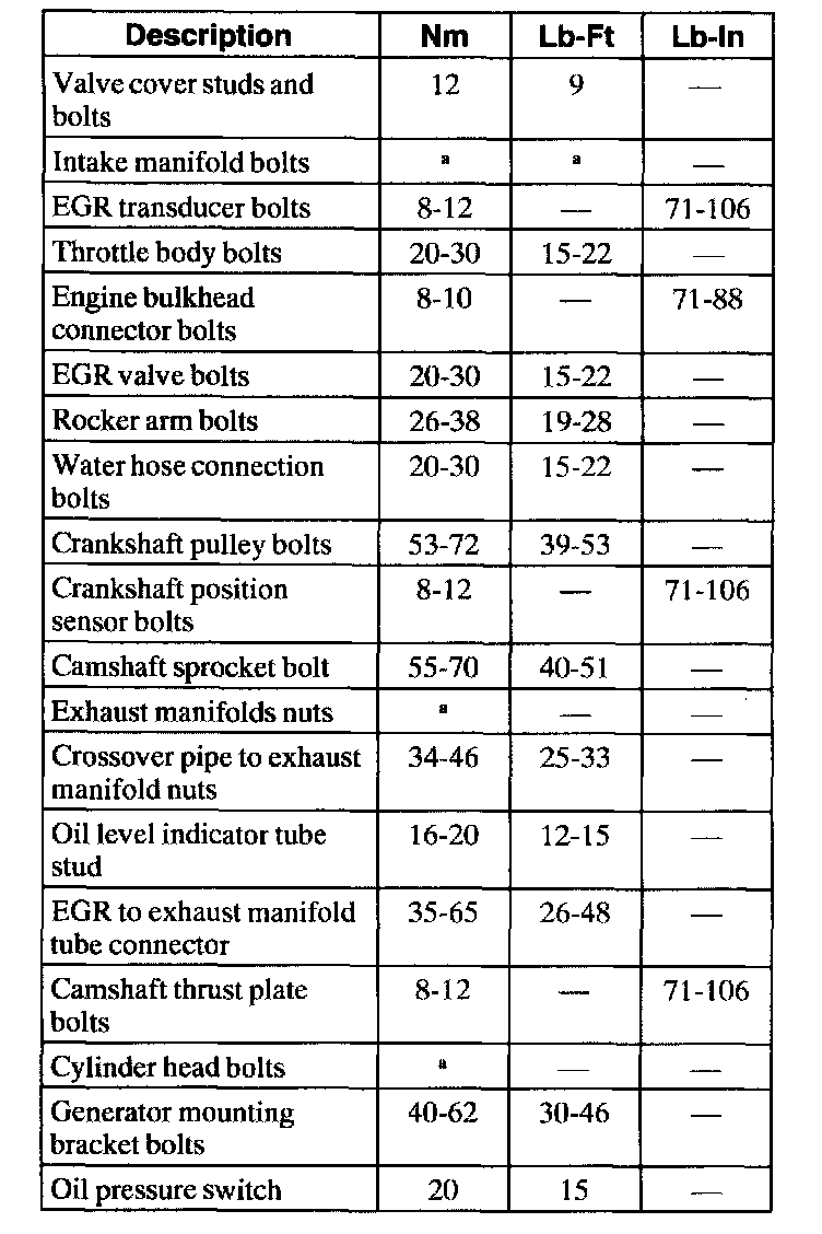 Torque Specifications