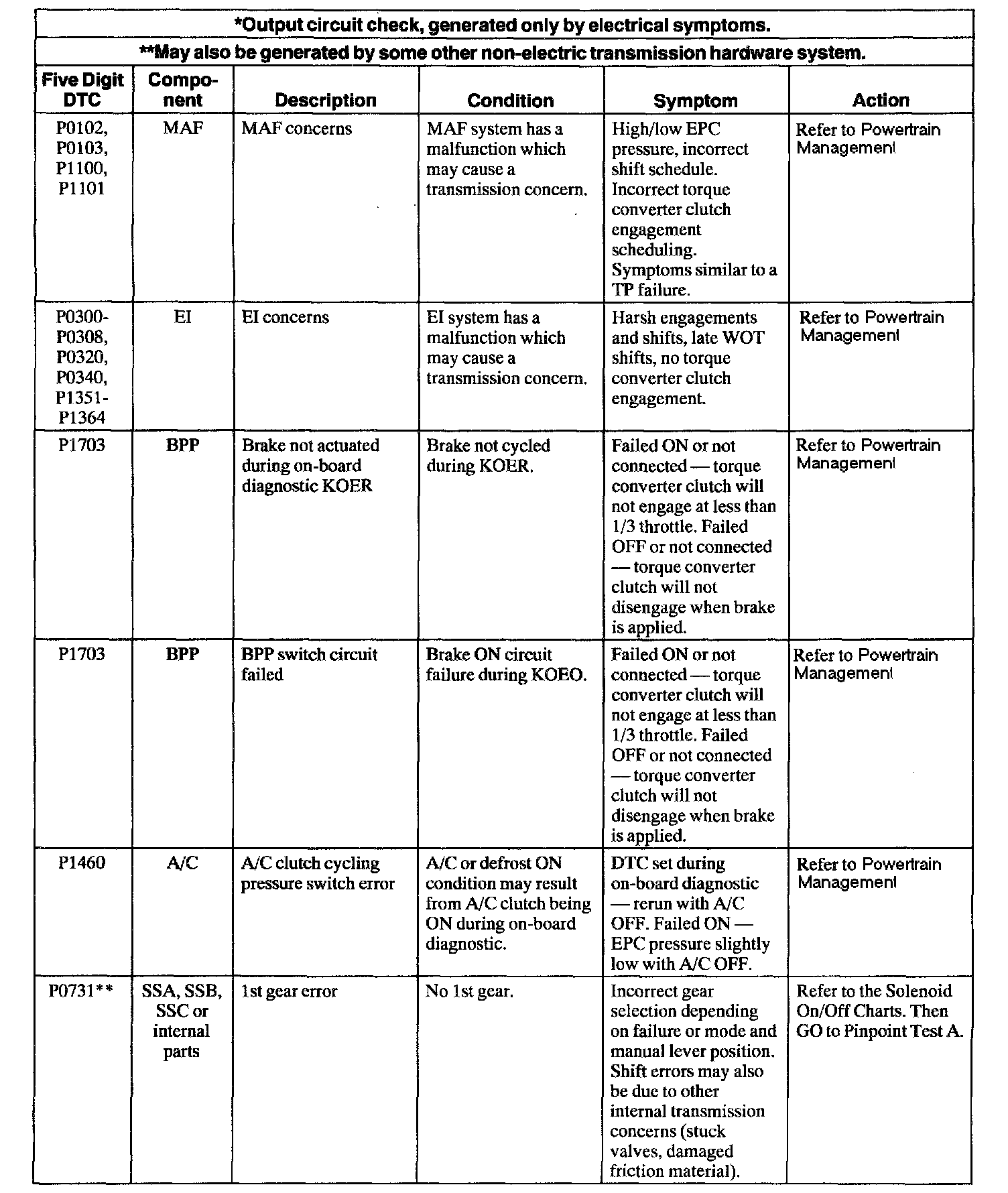 Trouble Code to Pinpoint Test Charts