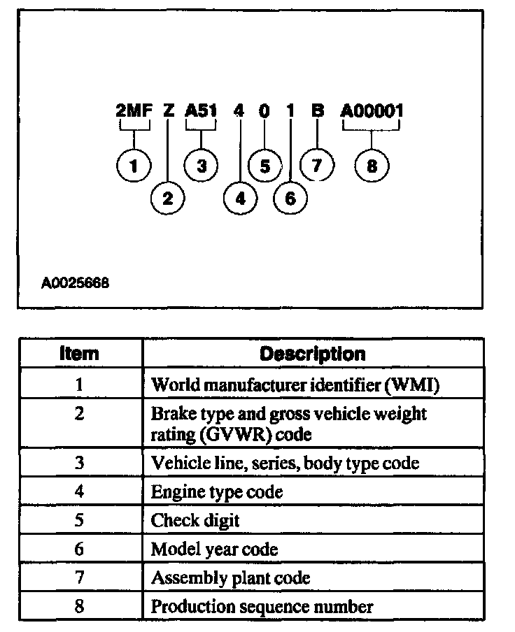 Positions 5 through 7 indicate vehicle line, series and body type.