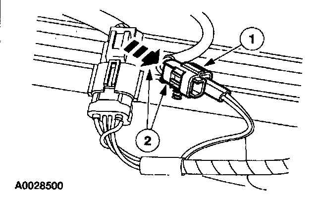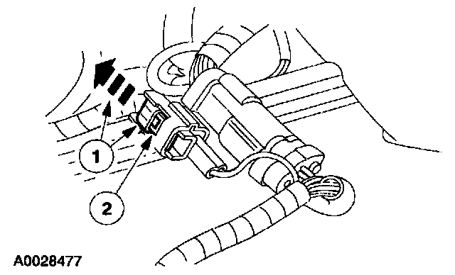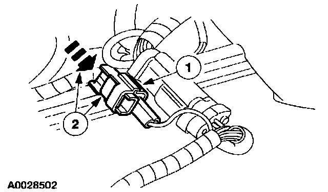 2 Push in to release the tab and disconnect the passenger seat side air bag electrical connector.