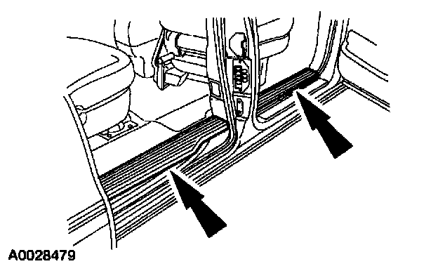 ^ Restraint system diagnostic tools MUST be installed under the seats in the side airbag (if equipped) and safety belt pretensioner to floor connectors.