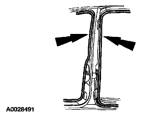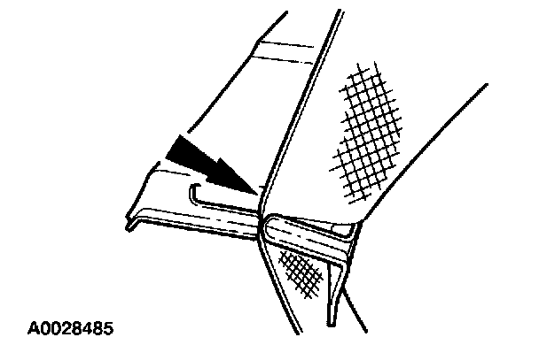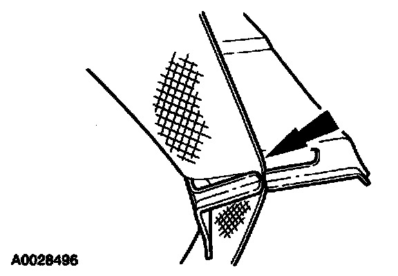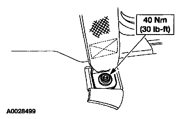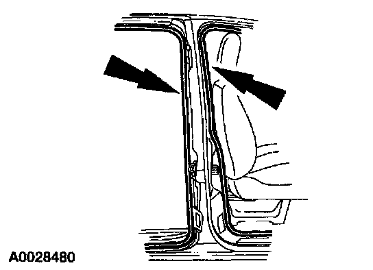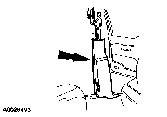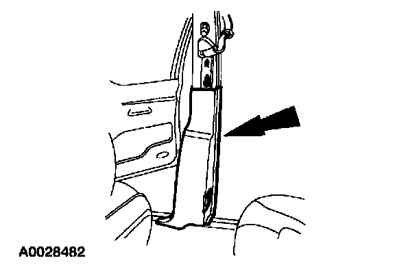 14. Route the safety belt webbing into the passenger side B-pillar lower trim panel.
