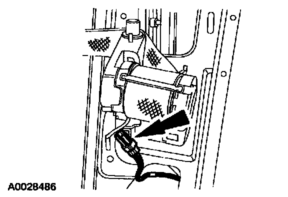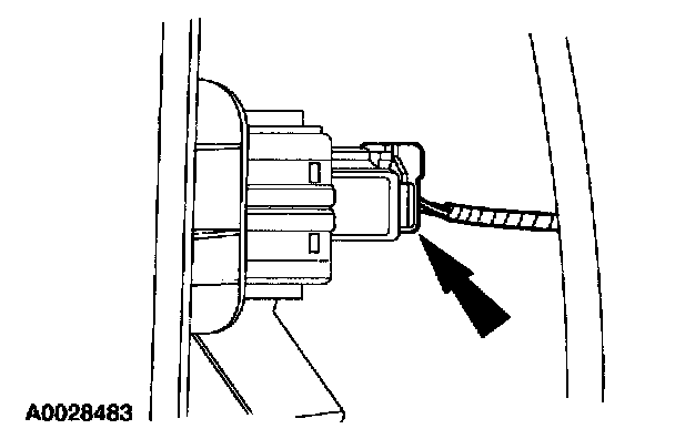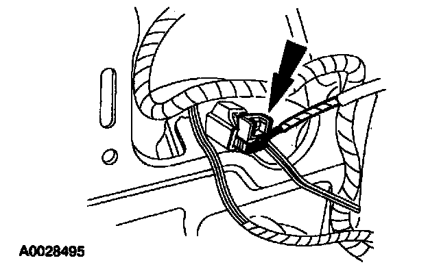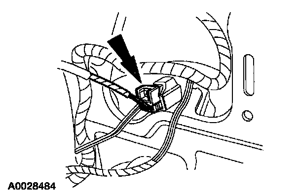 12. Remove the restraint system diagnostic tool from the passenger side safety belt retractor pretensioner floor electrical connector.