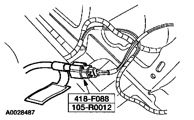 25. Attach the restraint system diagnostic tool to the driver seat side air bag floor electrical connector.