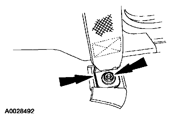 32. Route the safety belt webbing out and remove the driver side B-pillar lower trim panel.