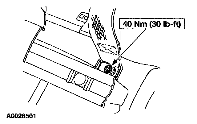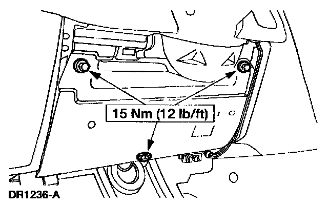 31. Position the steering column opening lower reinforcement and install the three bolts.