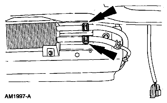 NOTE: If an A/C condenser core leak is suspected, the A/C condenser core must be leak-tested before it is removed from the vehicle.