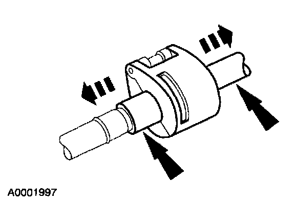 4. Connect the spring lock coupling fittings with a twisting motion until the A/C tube lock coupling spring snaps over the flared end of the female fitting.