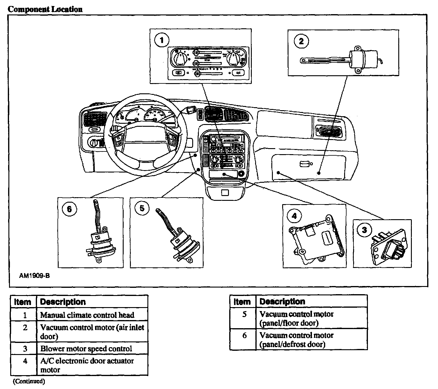 ^ The A/C heater function selector switch combines a vacuum selector valve for direct control of the vacuum control motors and electrical input to the instrument cluster module.