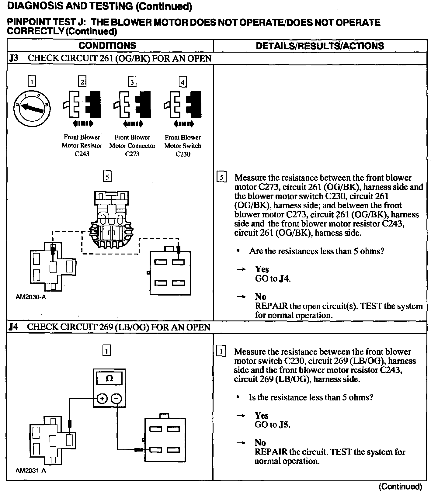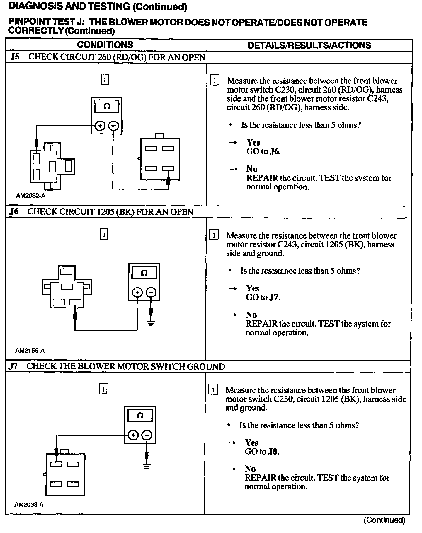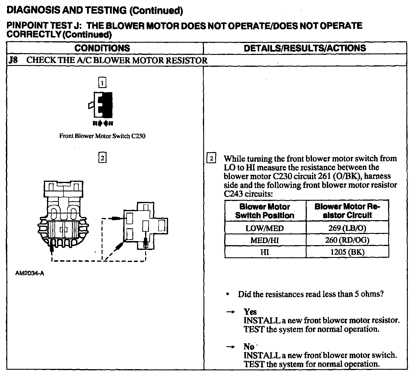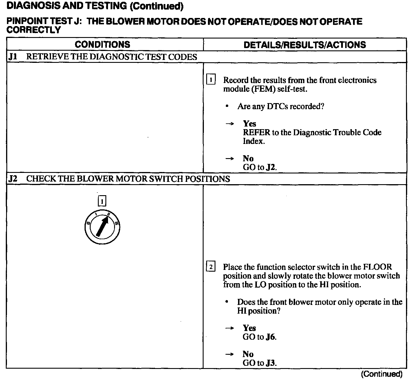 Test J: Blower Motor Does Not Operate/Does Not Operate Correctly