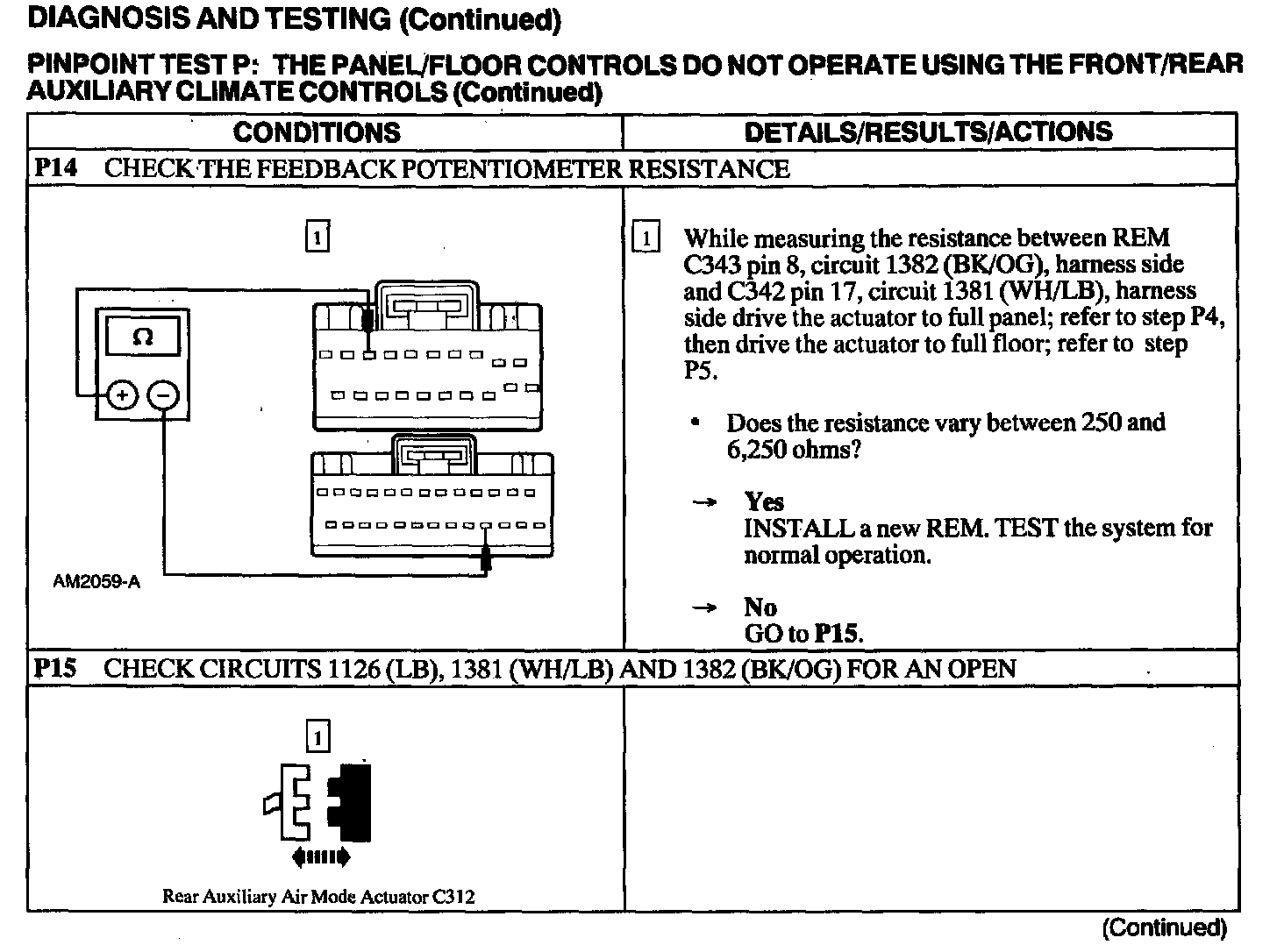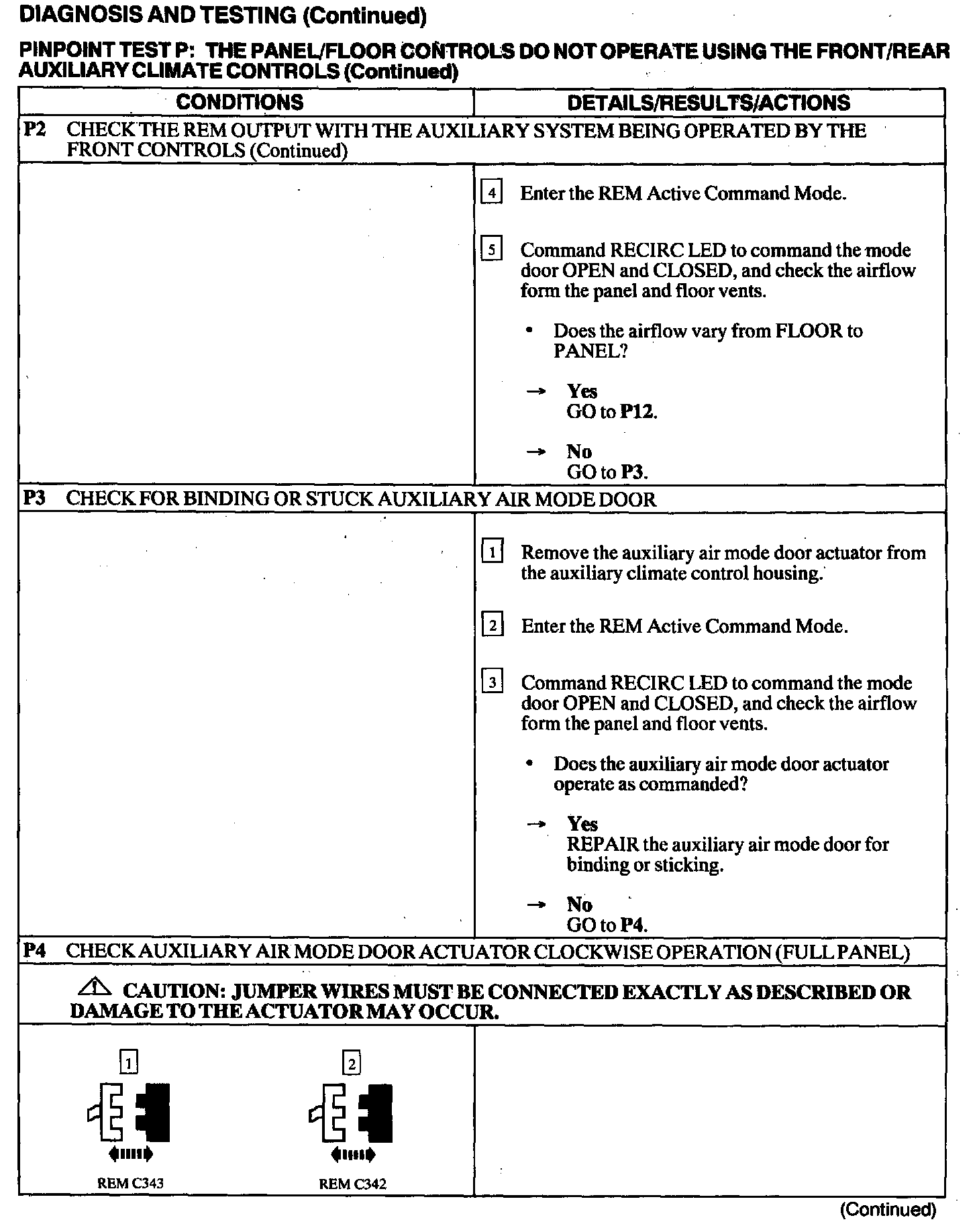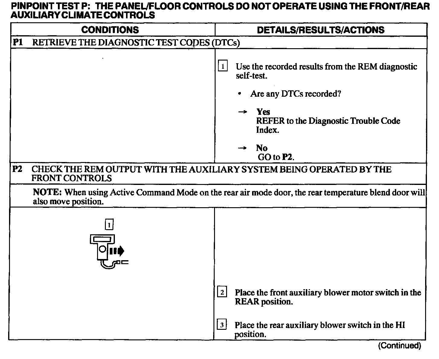 Test P: Panel/Floor Controls Do Not Operate Using The Front/Rear Auxiliary Climate Controls