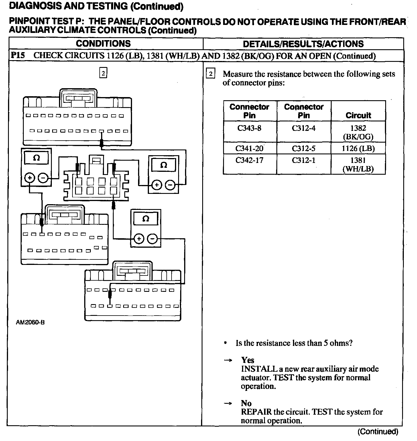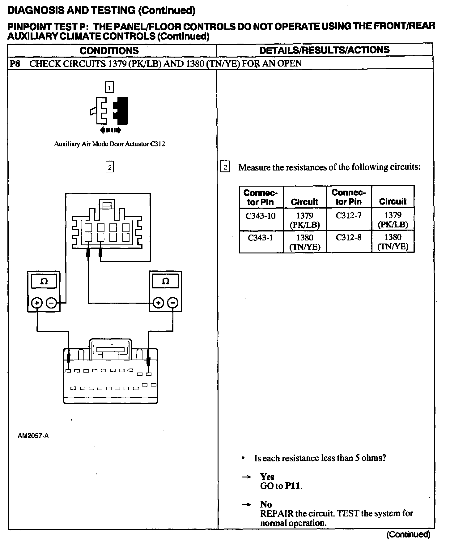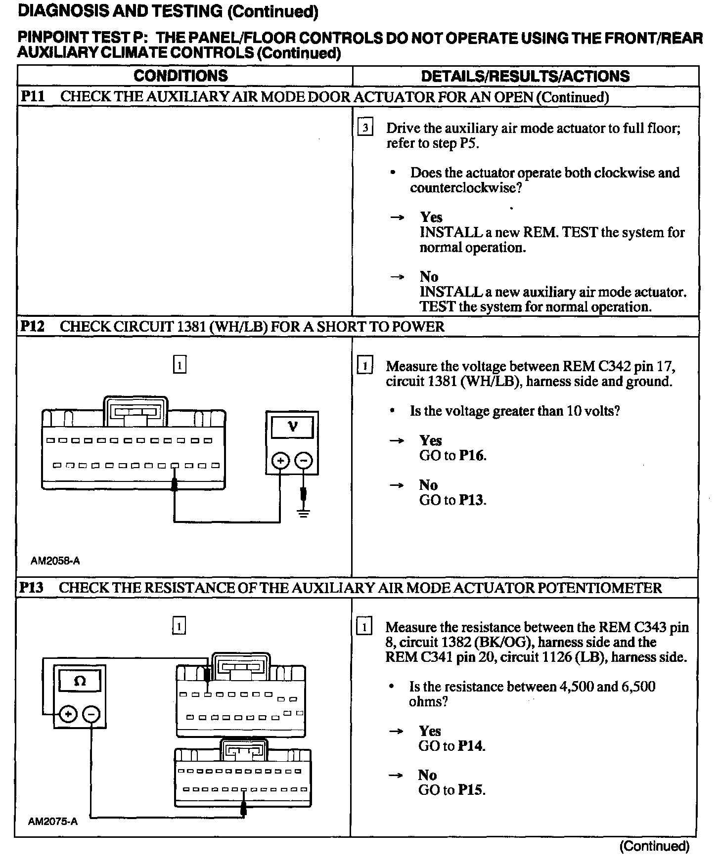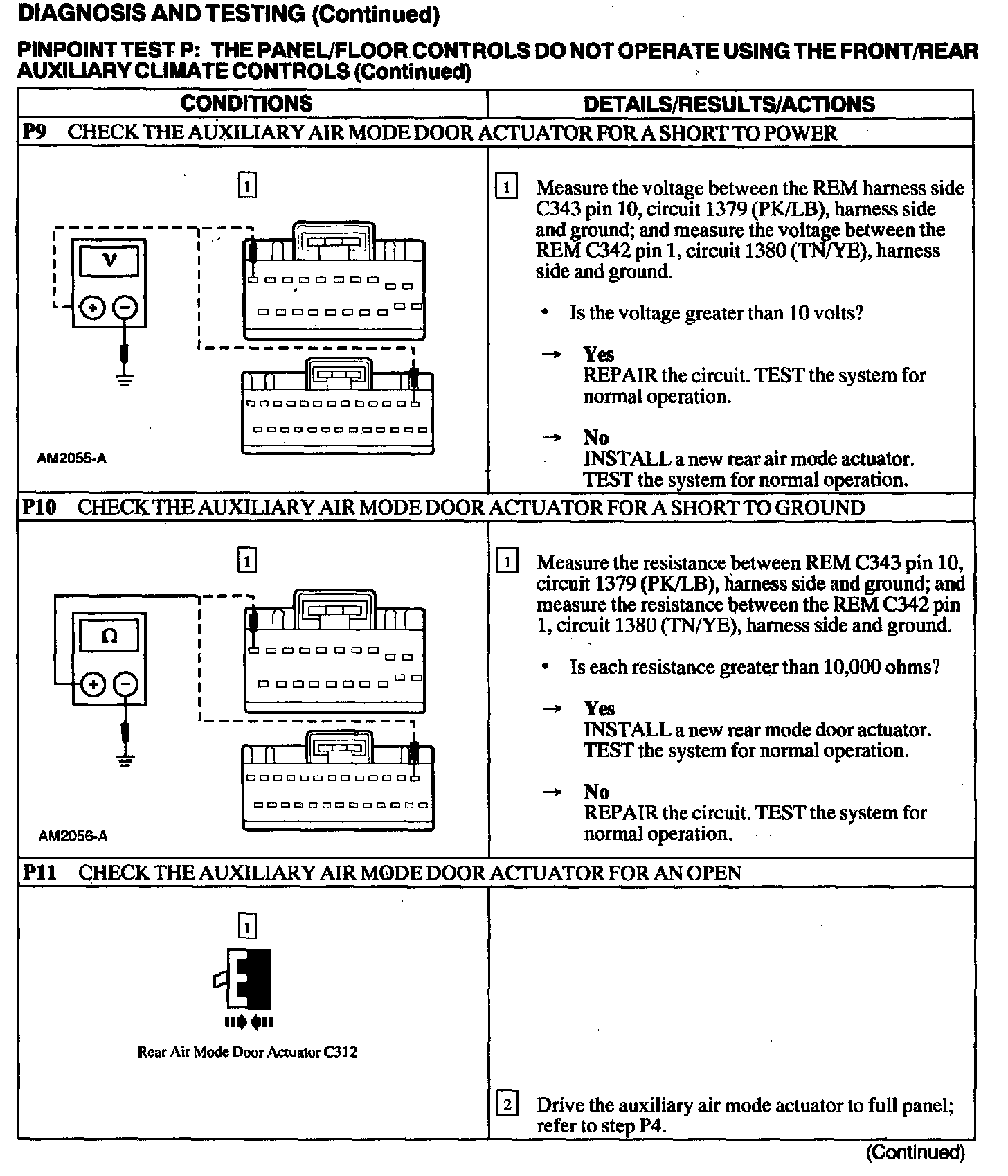 Test P: Panel/Floor Controls Do Not Operate Using The Front/Rear Auxiliary Climate Controls