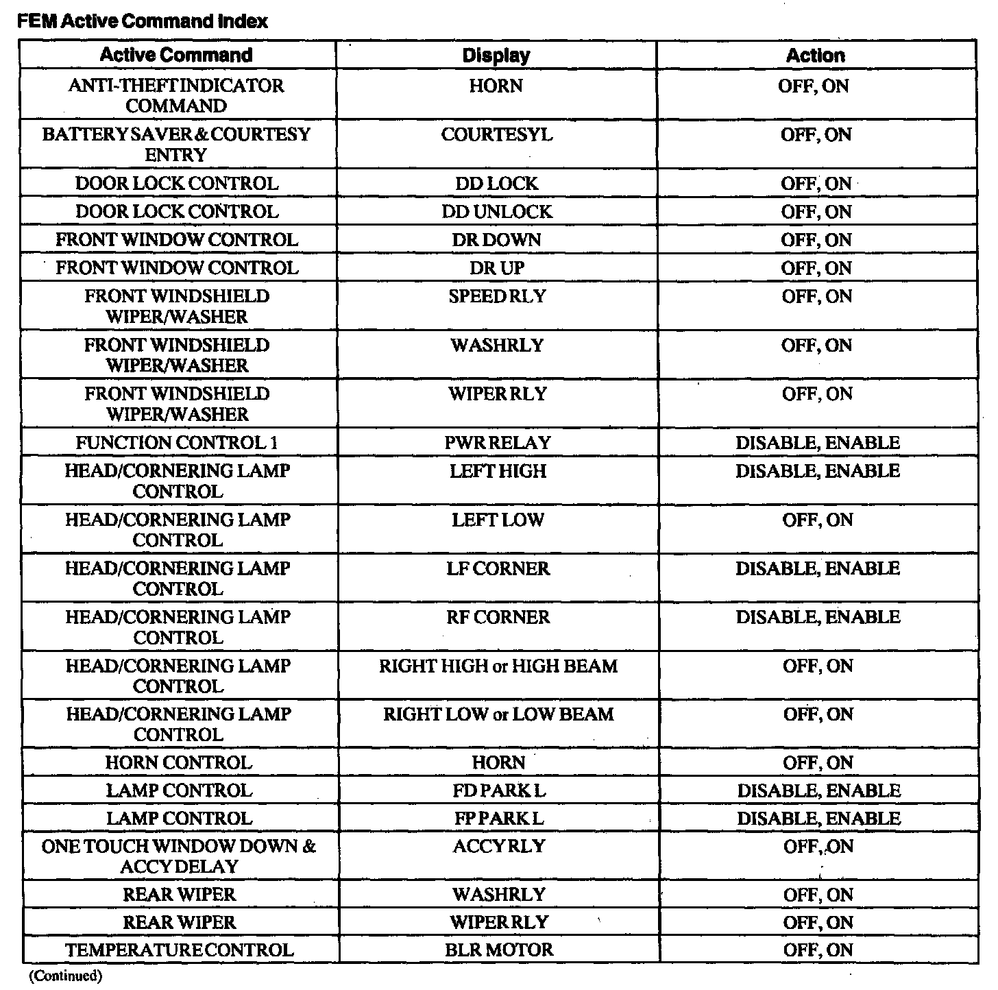 Front Electronic Module (FEM) Active Command Index