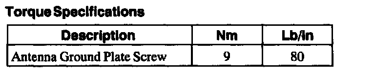 Torque Specifications: